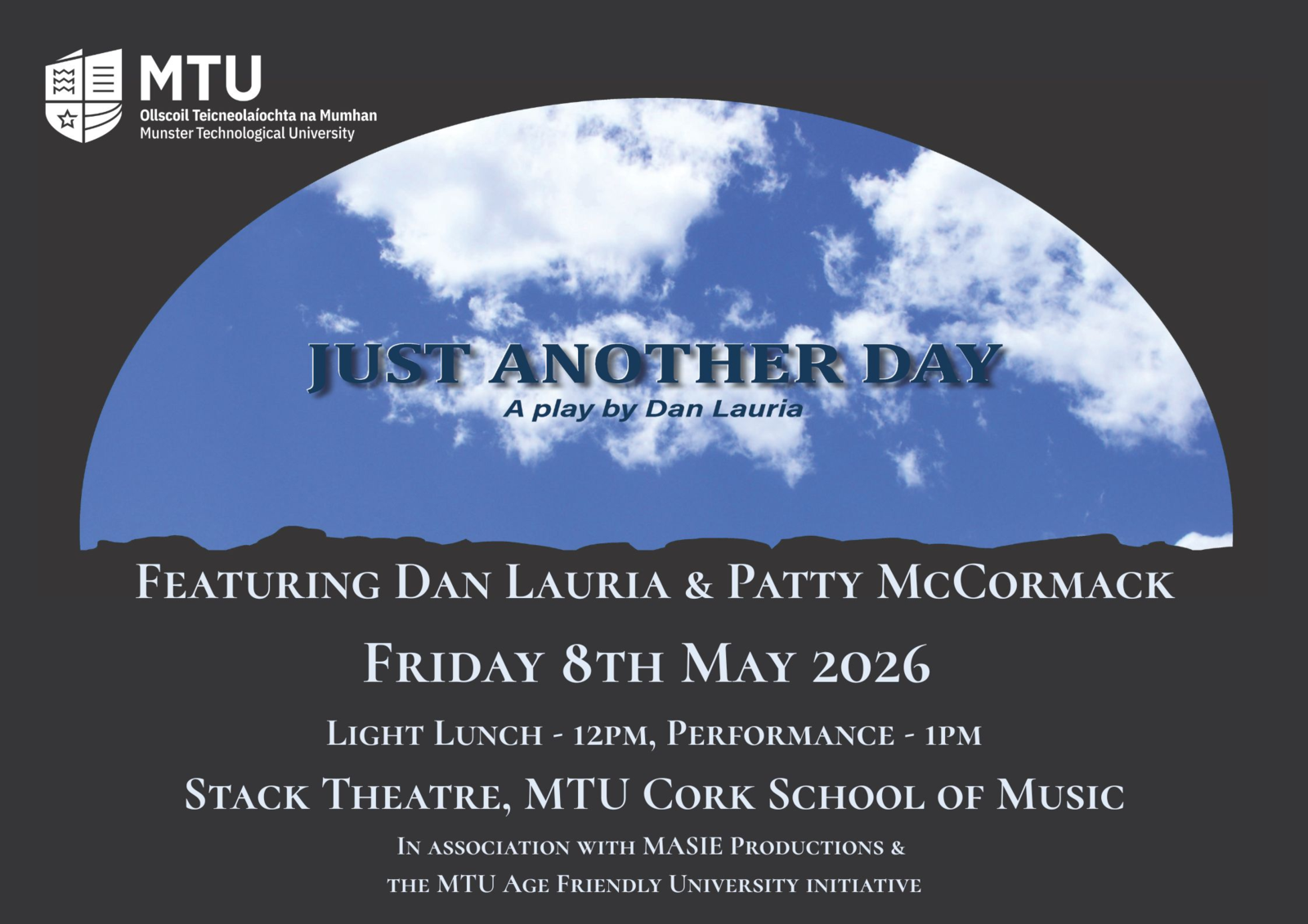 MTU Cork School of Music is delighted to present a special performance of Just Another Day, a poignant and deeply moving play written by acclaimed actor and playwright Dan Lauria.