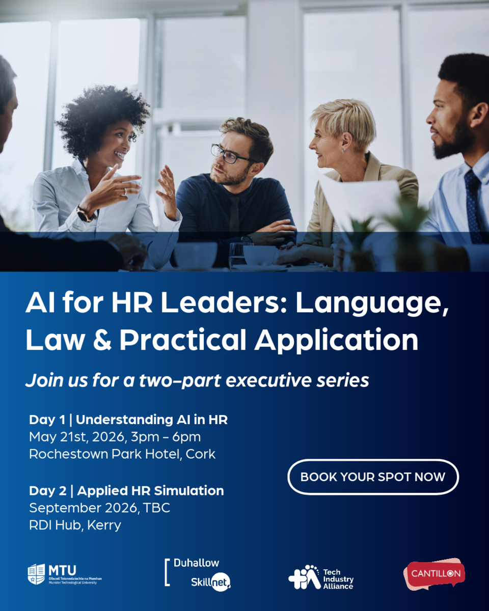 Join a practical two-part executive learning series for senior HR leaders, delivered by The Cantillon Academy @ MTU in collaboration with the Tech Industry Alliance.